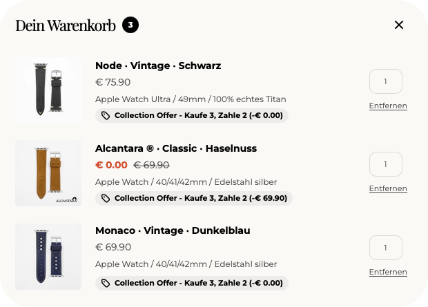 As soon as you add three straps to your shopping cart, your benefit is automatically activated: You only pay for two.